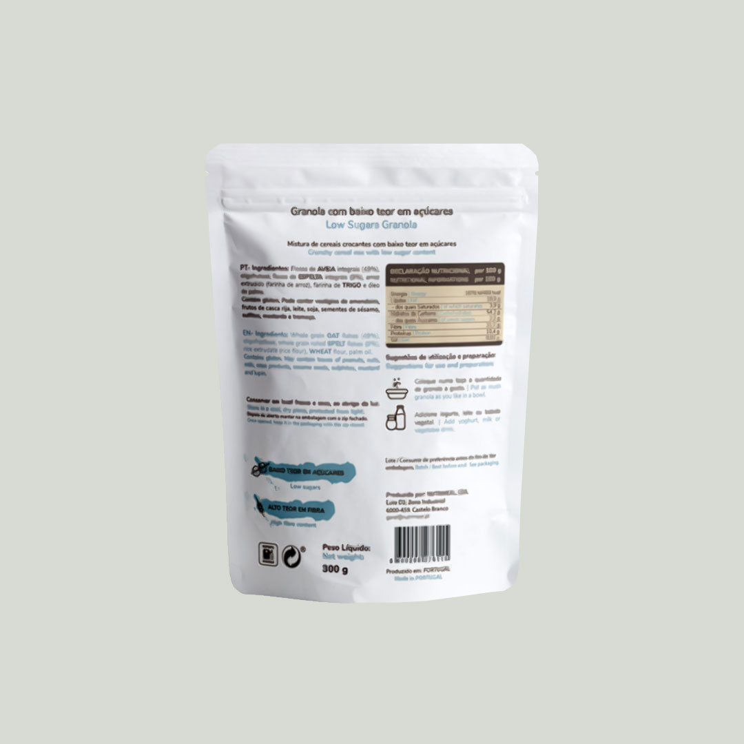 Com baixo teor em açúcares e alto teor em fibra, esta granola ajuda-te a manter a energia estável e a saciedade por mais tempo.