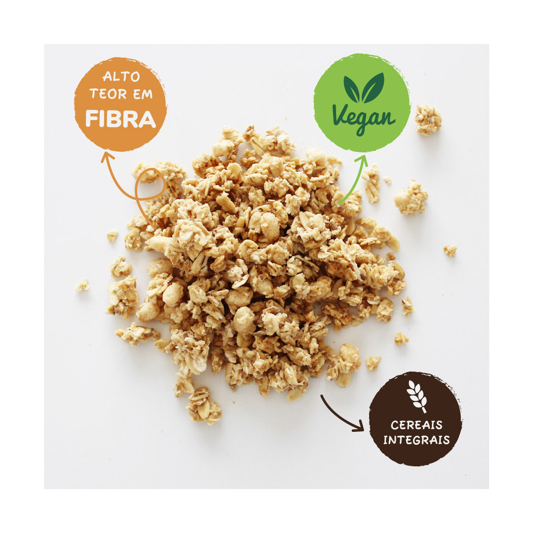 Feita com cereais integrais, 100% Vegan e com alto teor em fibra.